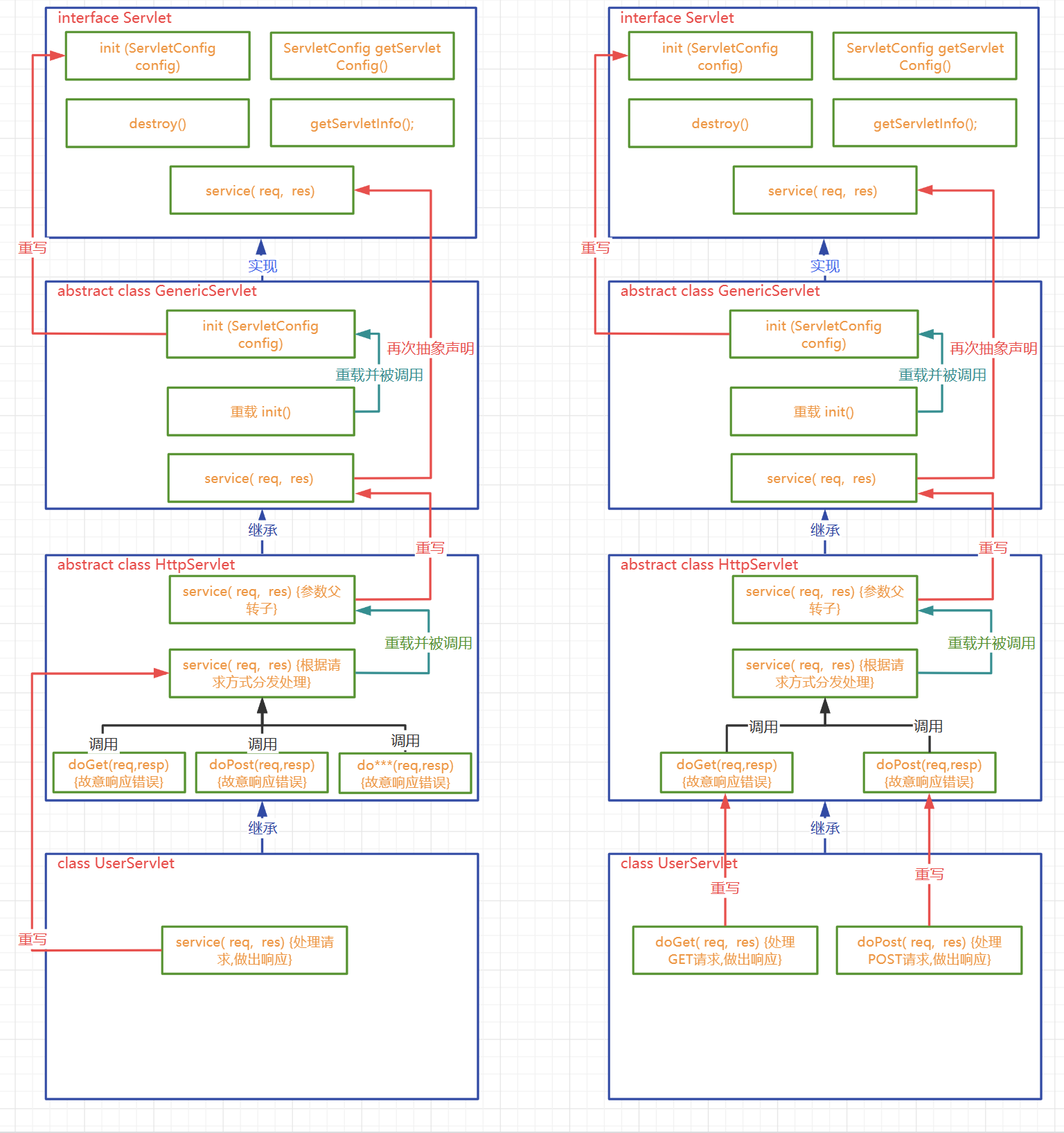 | 过滤请求 | void doFilter(ServletRequest servletRequest, ServletResponse servletResponse, FilterChain filterChain) | 每次请求 | 多次 |
